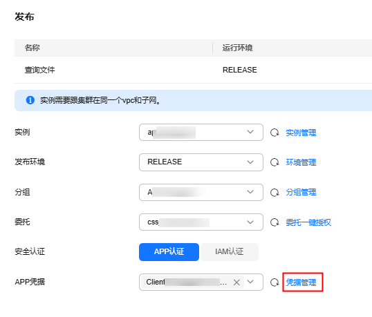 选择iam委托,授权当前账号访问和使用apig的权限。- 当首次配置委托时,可以单击“自动创建委托”新建委托“css_apig_agency”直接使用。