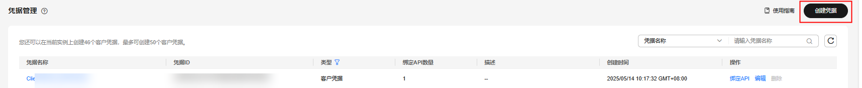 - 创建完成后单击创建好的凭据名称进入凭据详情页面。