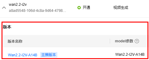 图标,可以查看该服务的版本。“model参数”列显示的名称可用于模型调用时使用,即model参数的值。
