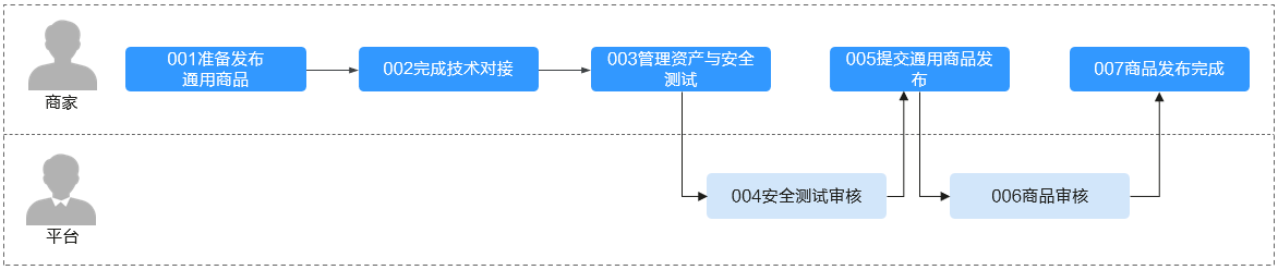 技术对接:如果您发布的商品为saas类、镜像类、api类商品,为了衔接您的服务交付流与平台交易流,您需要完成相应的基础技术对接,您可单击saas类商品技术对接方案、镜像类商品技术对接方案、api类商品技术对接方案,了解详细方案。其他接入类型的商品,不涉及技术对接。