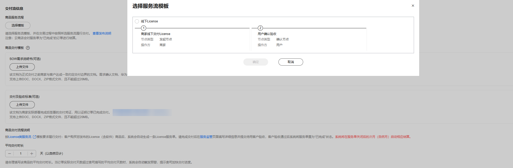 - 线下交付:选择线下交付则需要选择服务流模板。