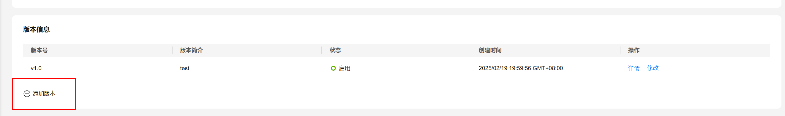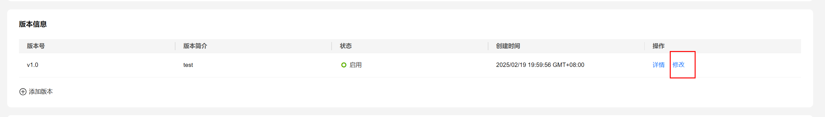 单击“版本信息”栏相应版本操作列的“修改”按钮,页面弹窗“编辑版本”。