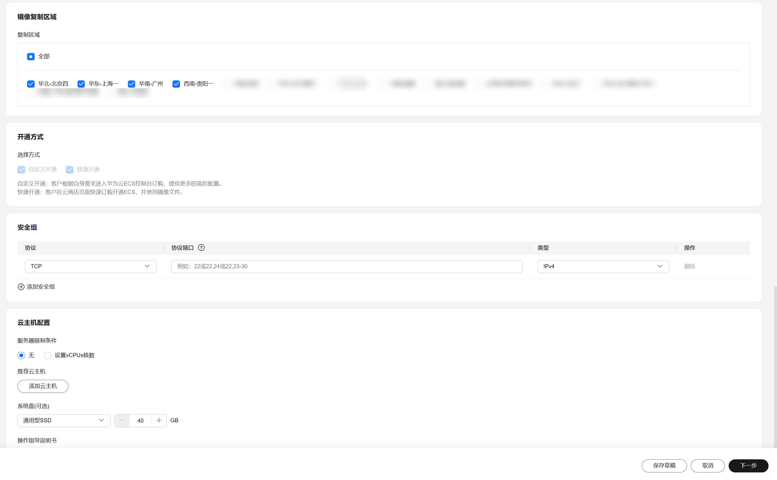 安全组配置:在用户选择页面部署时,推荐用户按照商家此处填写的配置创建安全组。
