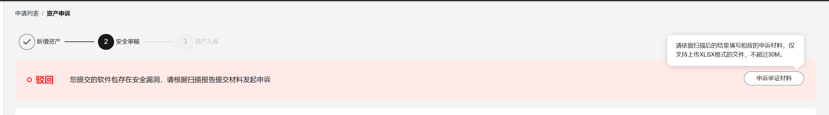 - 如安全扫描存在误报,单击“申诉”,进入申诉页面。