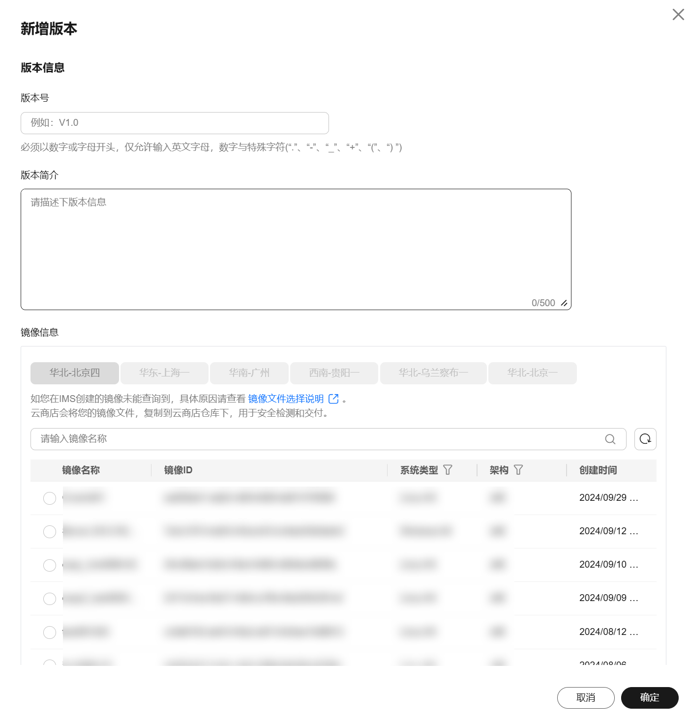- 发布镜像商品时,商家需要在资产中心创建镜像资产,将制作的系统盘镜像文件、版本、适配的云主机配置等信息维护到资产中心;