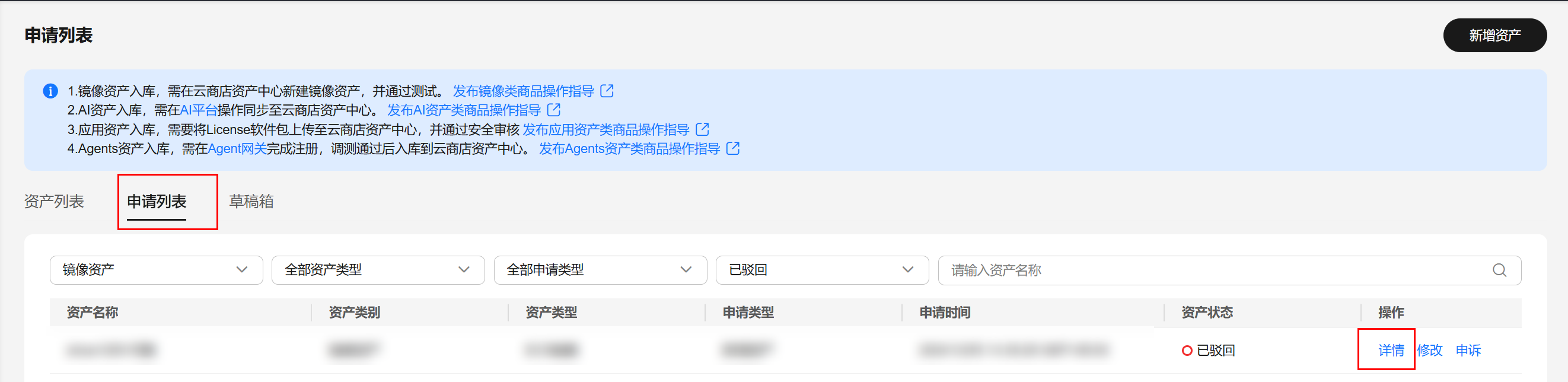 提交成功后,商家可在“我的资产>申请列表”中,查看审核状态。