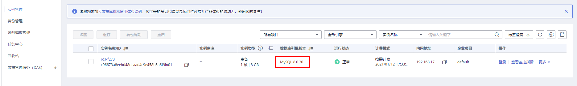 用户可以将rds for mysql 5.7版本实例升级到最新8.0版本,体验更丰富的版本能力。