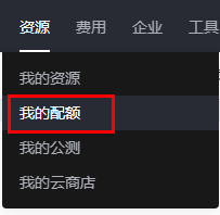 ,选择区域。 - 在页面右上角,选择“资源 > 我的配额”,进入“服务配额”页面。