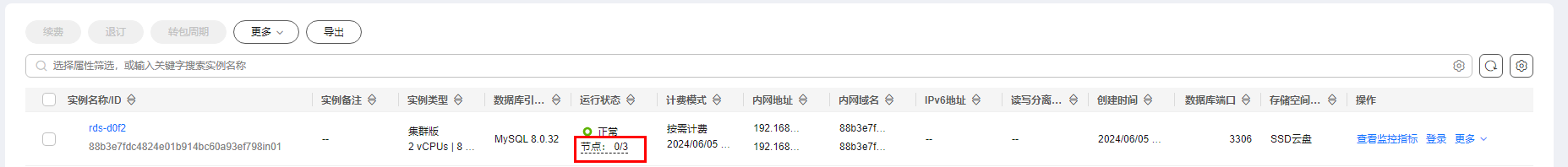 ,选择“数据库 > 云数据库 rds”,进入rds信息页面。 - 在“实例管理”页面,单击目标实例的节点数。