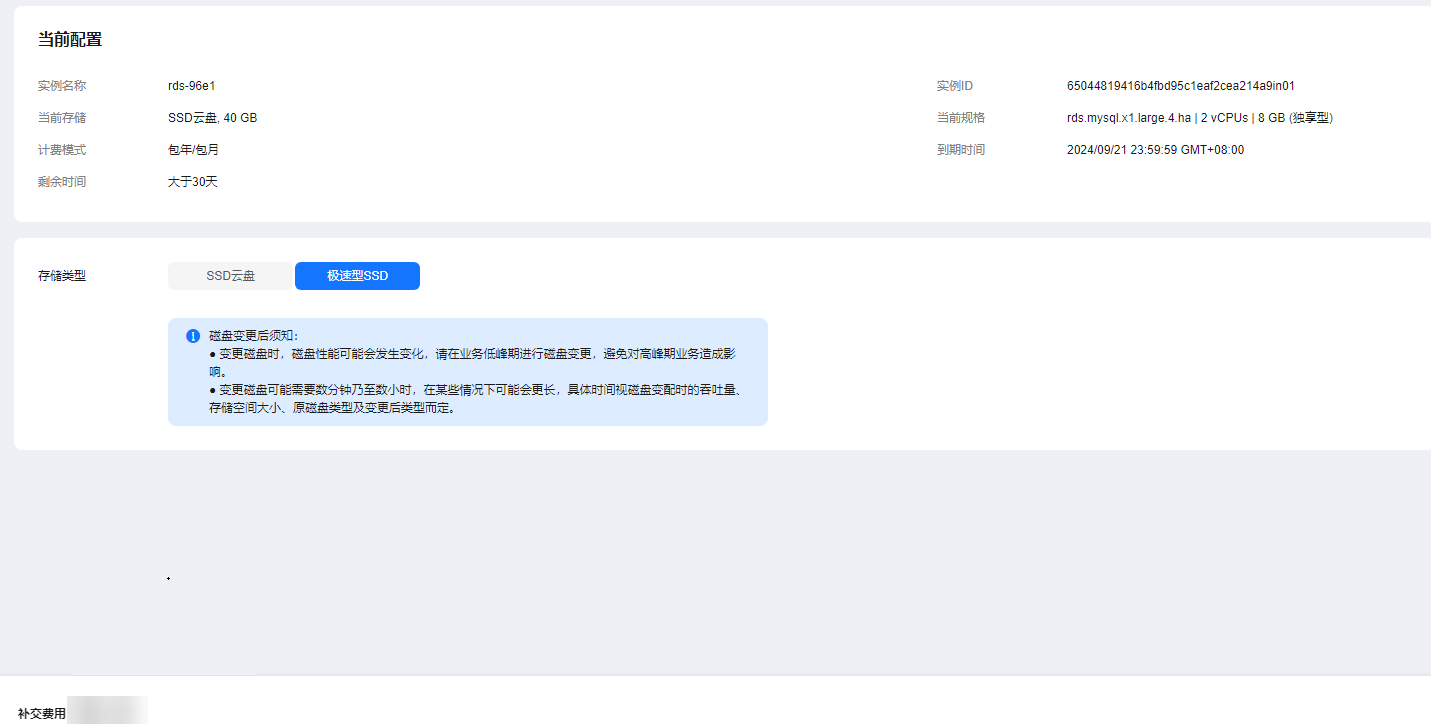 - 当前实例存储为ssd云盘,如果需要变更为极速型ssd,请参见ssd云盘变更为极速型ssd。