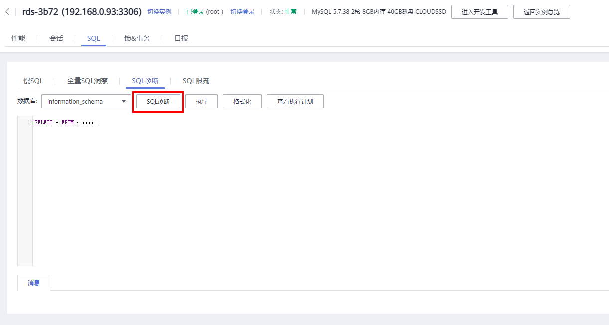 - 选择“数据库”,输入sql语句,单击“sql诊断”。