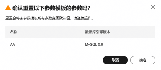您可根据自己的业务需求,重置自己创建的参数模板对应的所有参数,使其恢复到默认值。