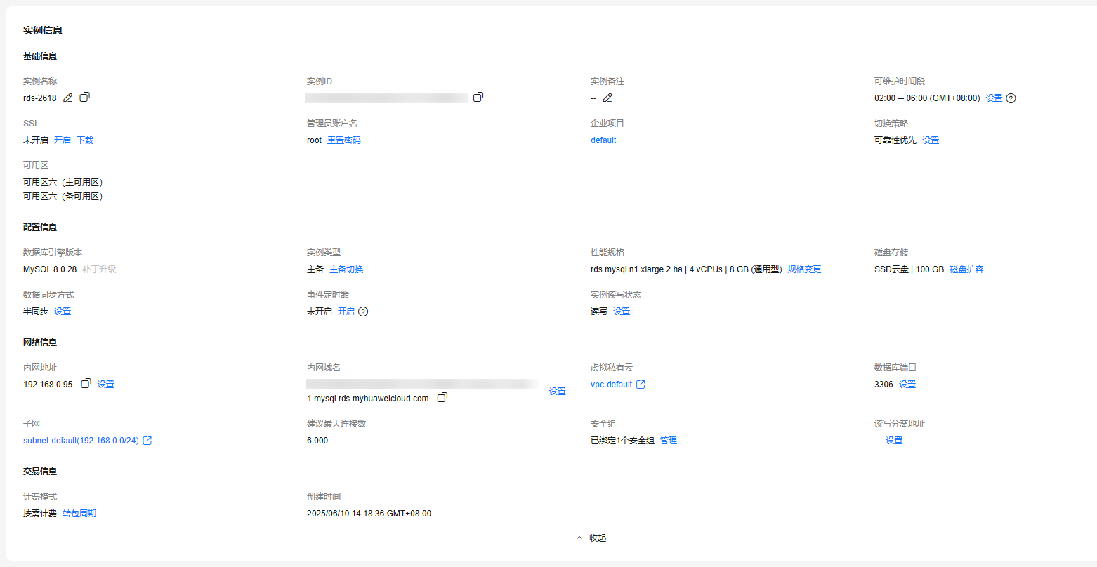 - 在“实例信息”模块,查看实例的基本信息,并提供变更实例功能。