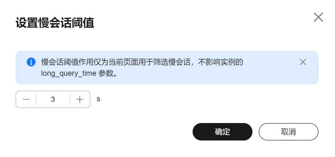 ,在弹框中按需设置慢会话阈值时间,单击“确定”。页面自动刷新筛选出大于该阈值的会话列表。