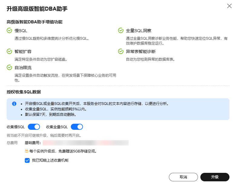 首次使用自治限流模块,请先升级高级版智能dba助手。