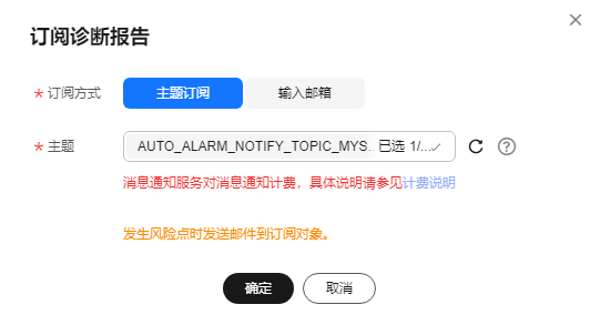 - 在页面右上角单击“订阅”,配置订阅参数,参数说明请参见表1。