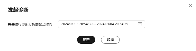- 单击“发起诊断”,选择诊断的起止时间,时间跨度一天以内,在该时间段内对当前实例发起诊断。