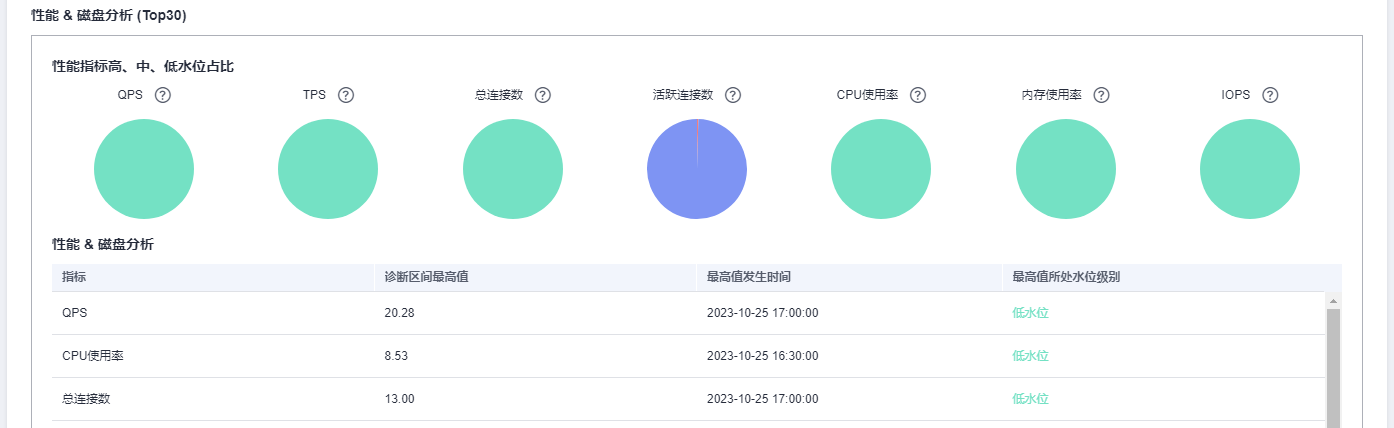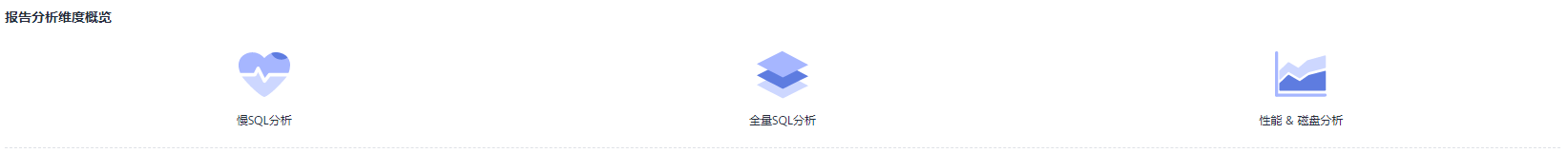 - 在“报告分析维度概览”模块,单击“慢sql分析”、“全量sql分析”或者“性能 & 磁盘分析”,查看诊断报告详情。
