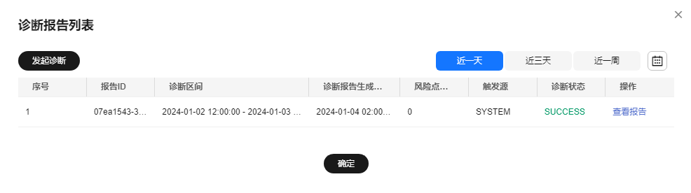 - 在页面右上角单击“查看历史诊断报告”,在“诊断报告列表”中查看历史诊断报告。