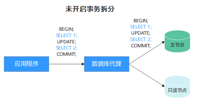 开启事务拆分后,代理会将事务中第一个写前的读请求分发到只读节点,从而减轻主节点的负载。
