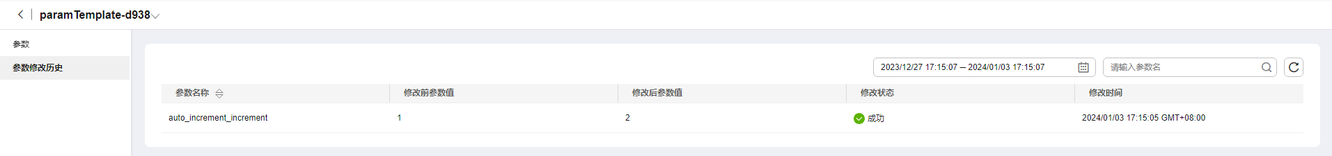 - 在左侧导航栏,单击“参数修改”,单击“参数修改历史”。