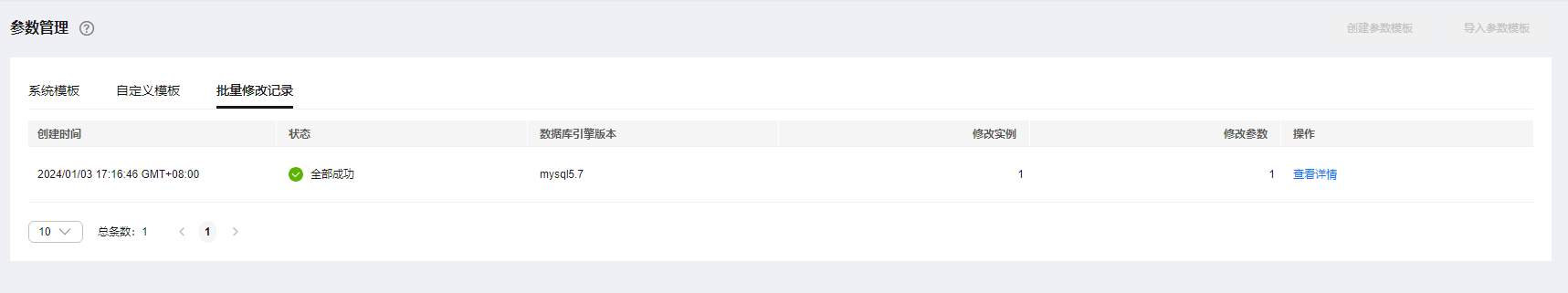 ,选择“数据库 > 云数据库 rds”,进入rds信息页面。 - 在“参数管理”页面,选择“批量修改记录”页签。