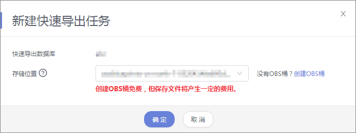 您也可通过单击“快速导出”,选择目标数据库,在创建快速导出任务弹窗中选择存储位置,并单击“确定”。