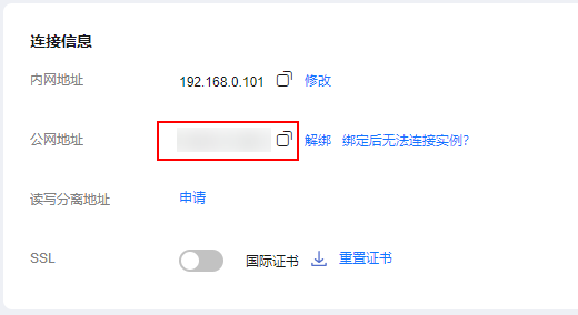 - 读写公网地址(购买实例后需要单独绑定)