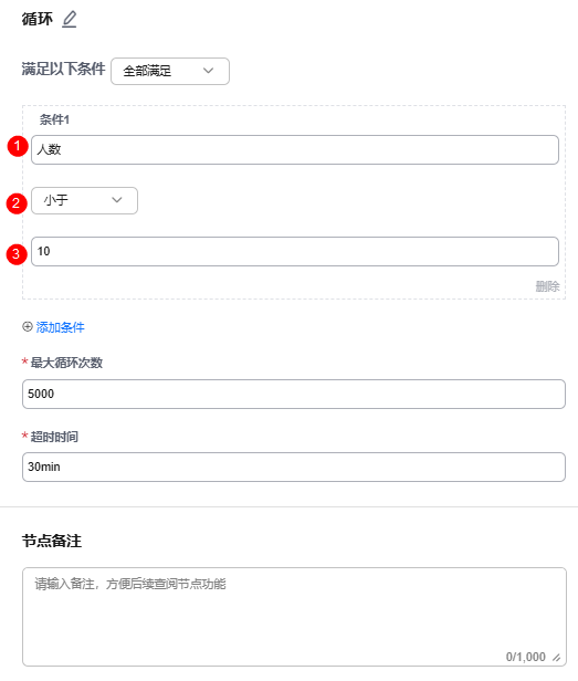 节点备注:输入节点备注信息,方便后续查阅节点功能。节点备注最大长度限制为1000个字符。