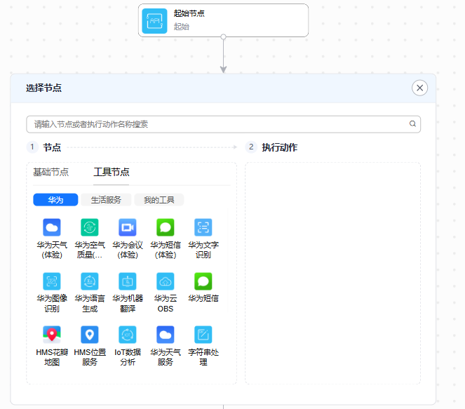 - 华为类:为用户提供各种华为类的工具节点,如华为会议、华为天气服务等。具体介绍请参见。