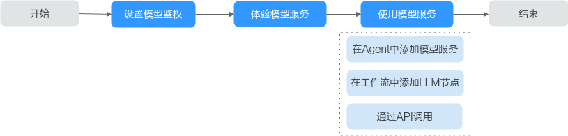 模型鉴权设置完成后,可在agent、工作流中调用模型服务或通过api调用模型服务,请参考在ai原生应用引擎中创建单agent(自主规划模式)、创建工作流以及。 |