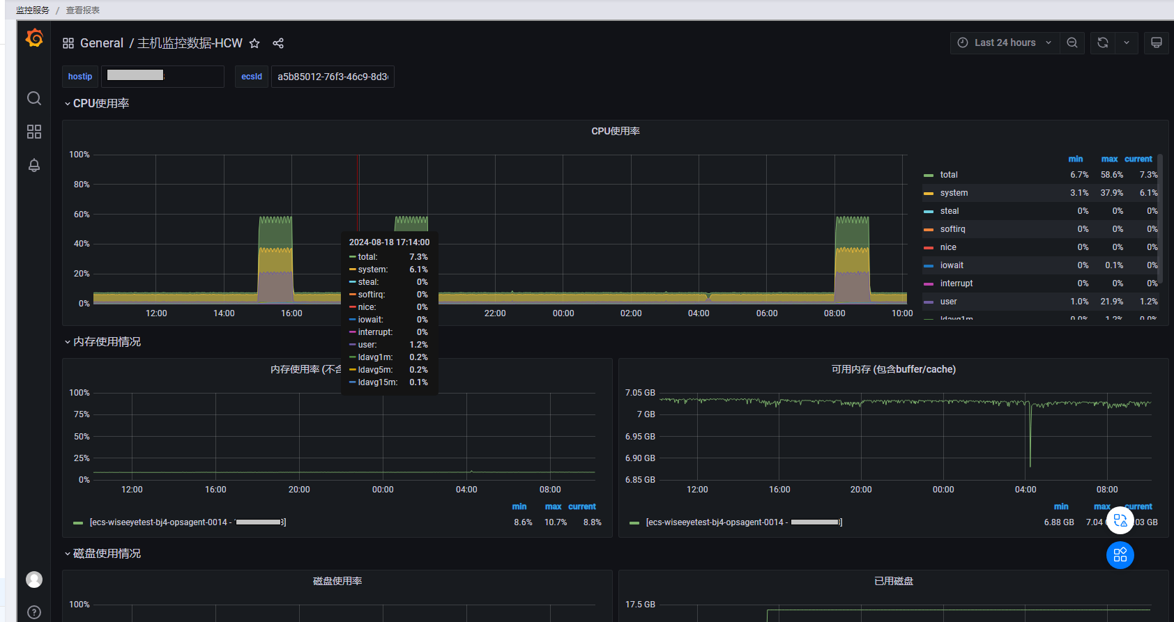 监控服务对接grafana,grafana是一个跨平台的开源的度量分析和可视化工具,可以将采集的数据查询进行可视化的展示,并及时通知,用户可在虚机报表界面查看主机的各项监控指标。