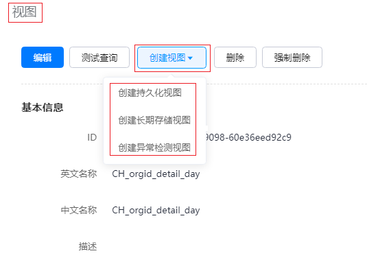 创建持久化视图/长期存储视图/异常检测视图