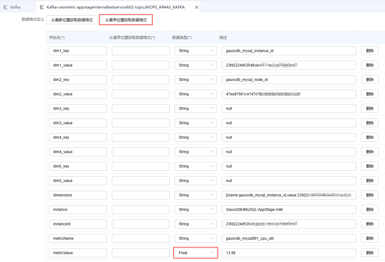 - 单击数据格式定义后的“从最早位置获取数据格式”。