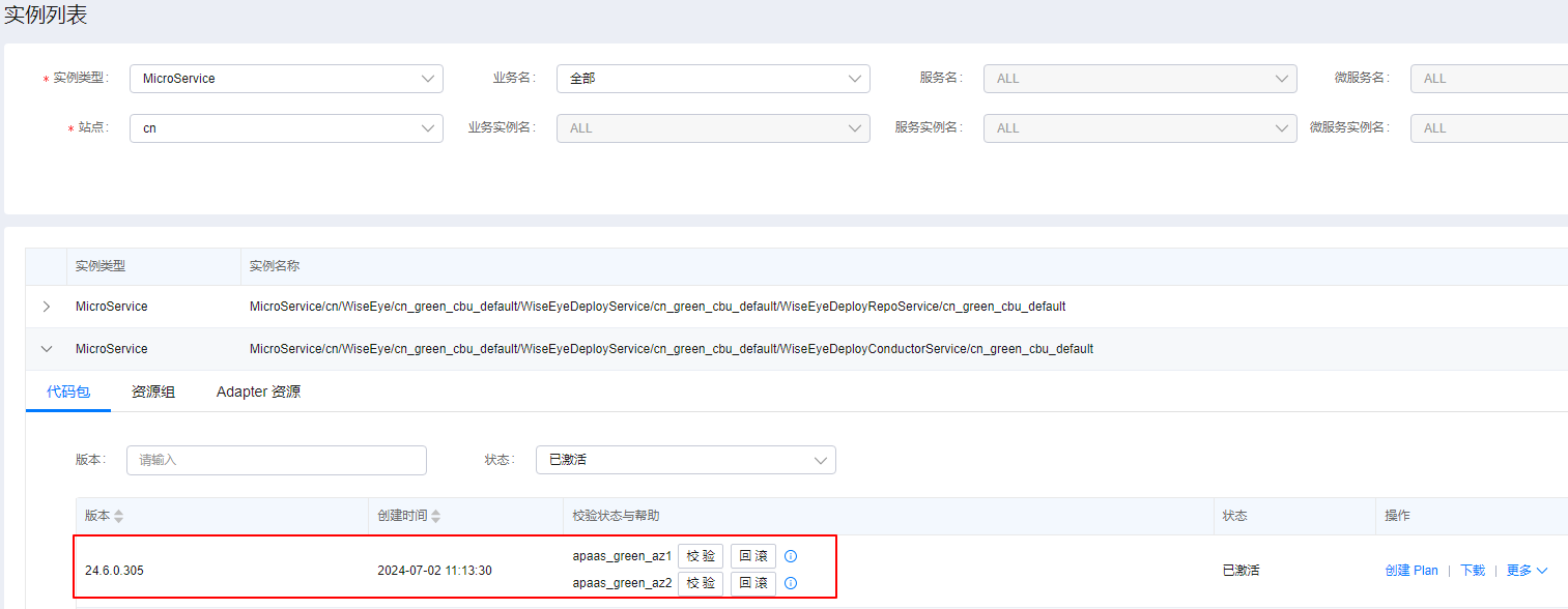上传后会在该实例下方代码包列表展示已新增代码包,如图1所示。