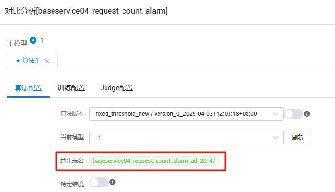 - 单击该任务所在行“操作”列的“模型”,默认显示“算法配置”页签,单击“确定”,查看并确认生成的输出表名,如图1所示。单击“训练配置”,在“训练配置”页签,依次完成注册任务、启动任务和立即训练。单击“judge配置”,切换至“judge配置”页签,依次完成初始化daemon、注册任务和启动任务。单击“确定”。