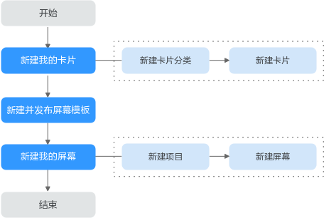 运营看板使用流程如图1所示,包括“新建我的卡片”和“新建我的屏幕”。