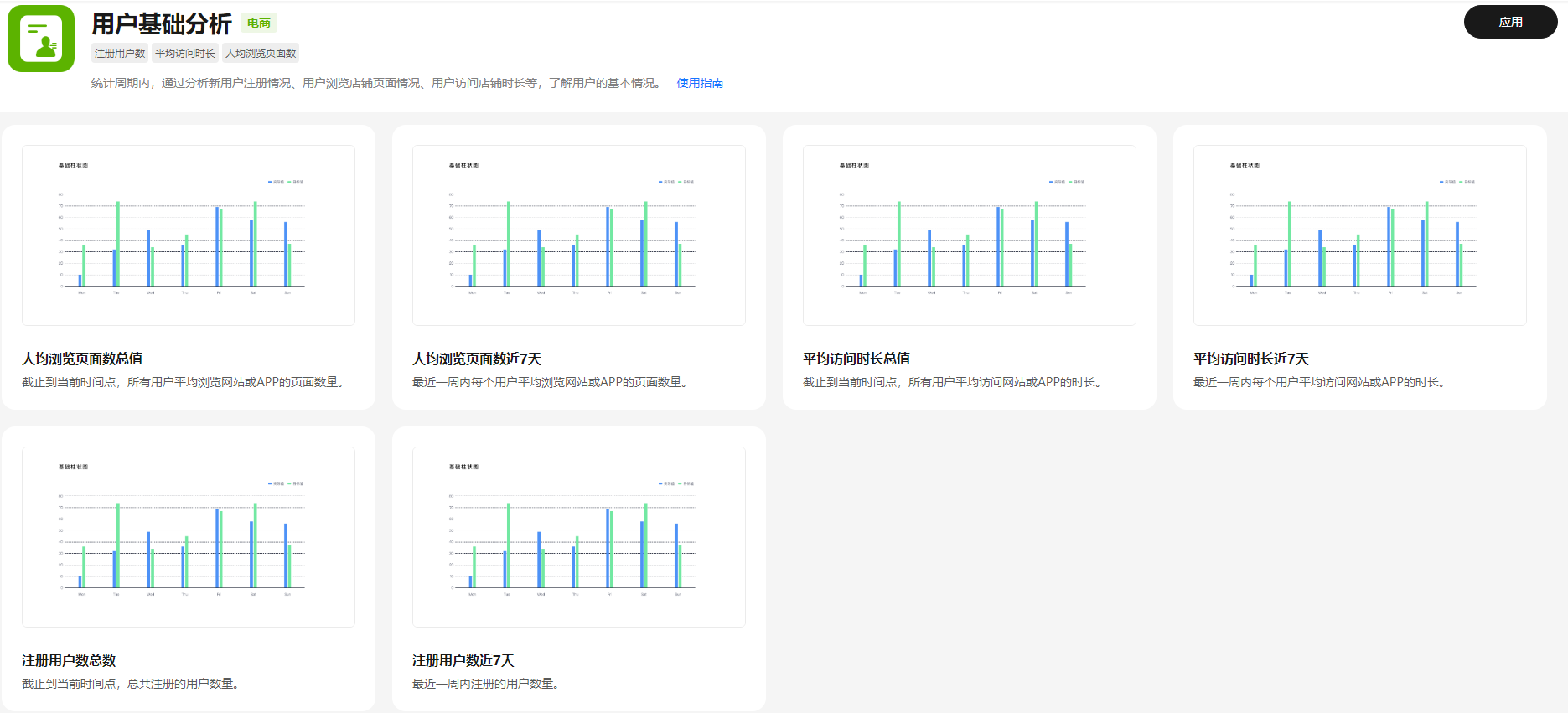 统计周期内,通过分析新用户注册情况、用户浏览店铺页面情况、用户访问店铺时长等,了解用户的基本情况。