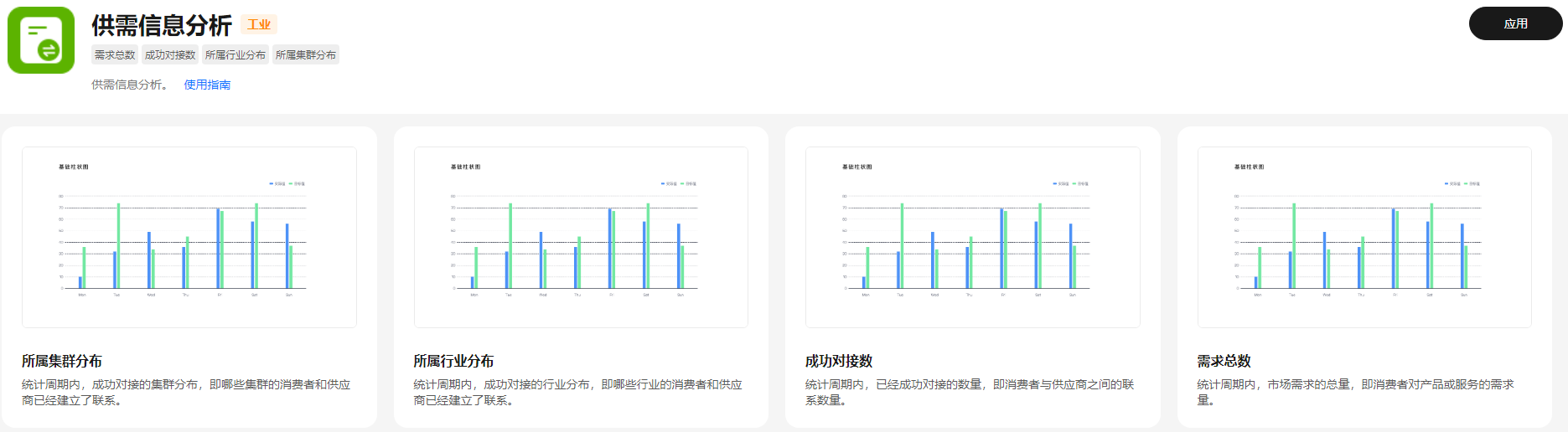 - 需求总数和成功对接数可以用来评估需求市场的活跃程度和对接效率。