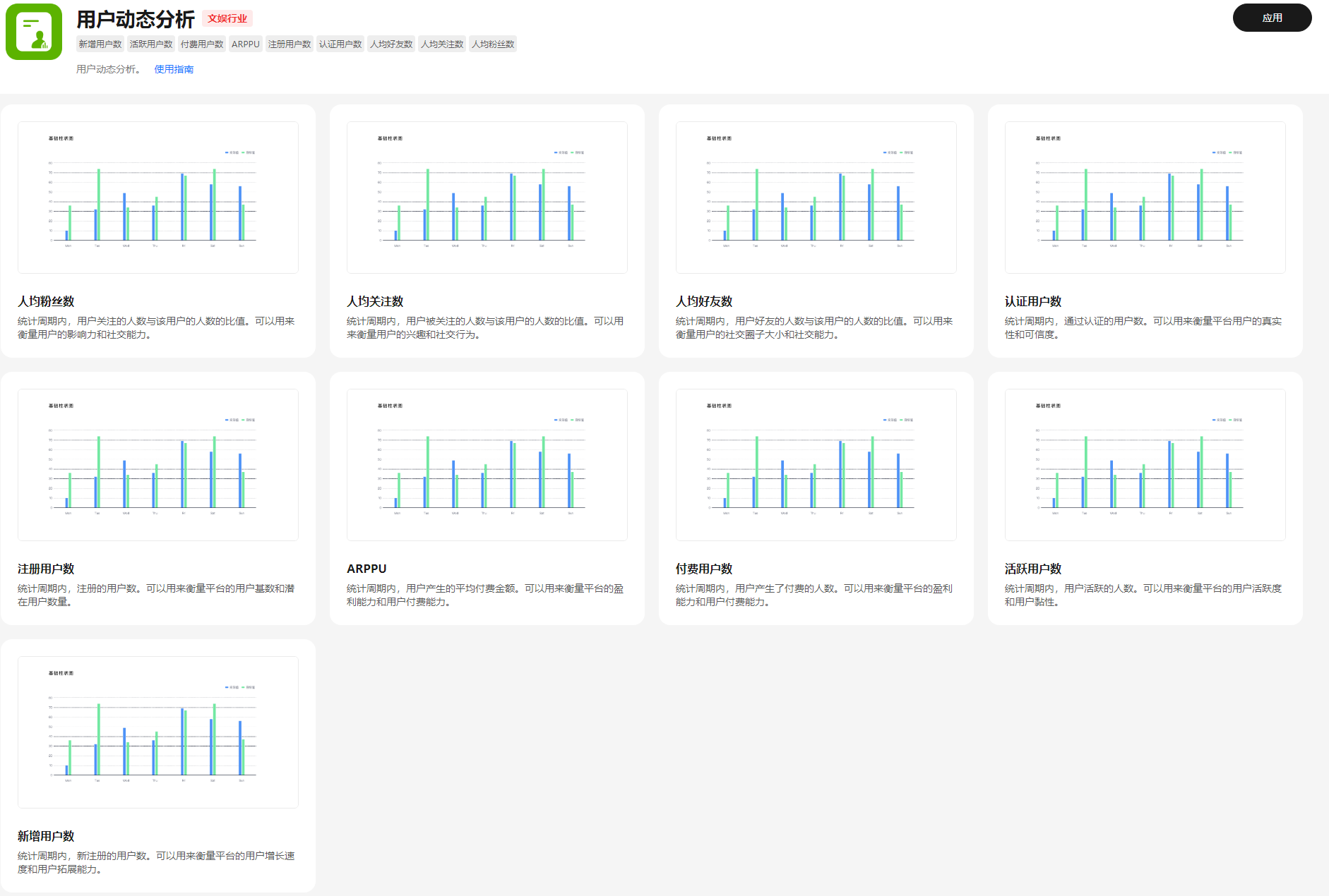 统计周期内,通过分析人均粉丝数、人均关注数、人均好友数、认证用户数、注册用户数等,以了解用户的需求、偏好和行为模式,从而为产品优化和营销策略提供依据。