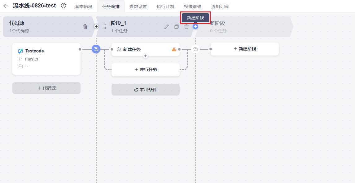 - 在流水线的“任务编排”页面,单击