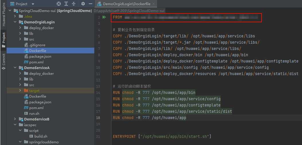 图9 将镜像地址粘贴到dockerfile文件中
